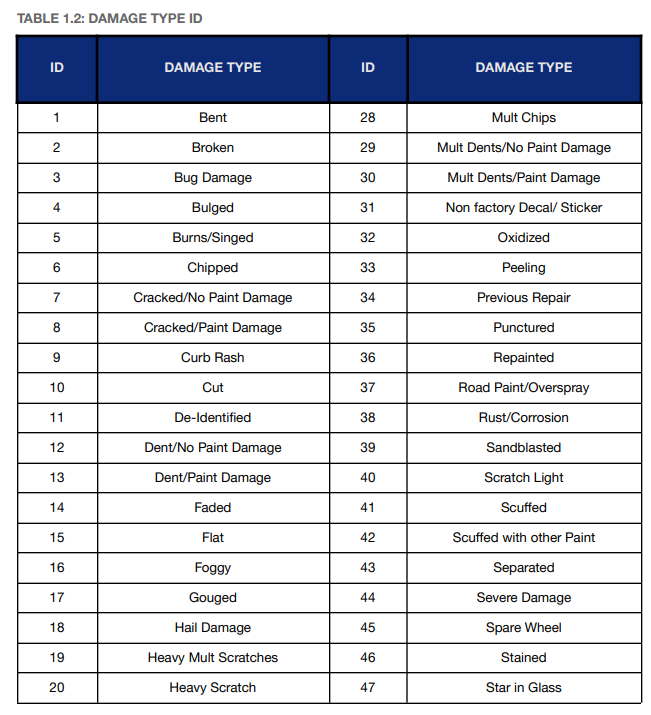 {% file src="<https://3056819394-files.gitbook.io/~/files/v0/b/gitbook-x-prod.appspot.com/o/spaces%2FIMmt4CHr5aRB2VBMvpEQ%2Fuploads%2FgMuQRgZmvRXEe7iy6bPx%2FPAVE's%20Unified%20Vehicle%20Damage%20Codes%20(UVDC).pdf?alt=media&token=1276c901-780e-472a-873d-70db10aff64e>" %}