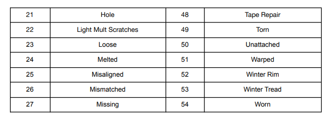 These damages are mainly concentrated on the exterior and wheels and tires.&#x20;